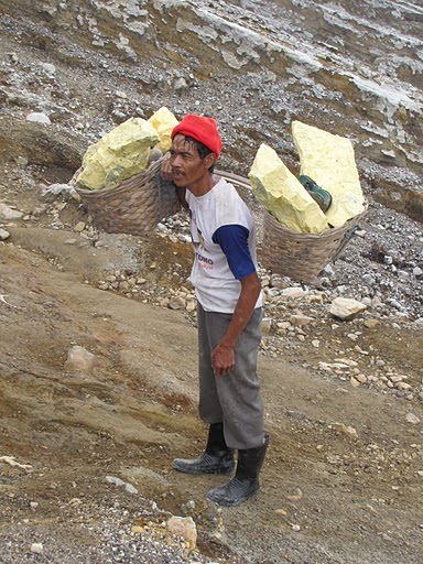 Porteur de soufre au volcan Kawa Ijen